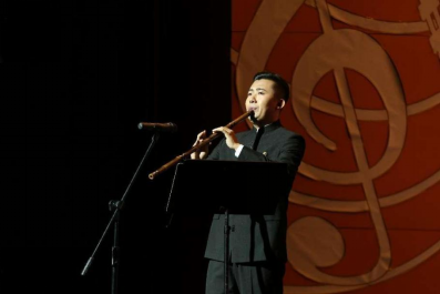 接着,一首欢快的《小拜年》由2020级硕士研究生于宏禹演唱,此曲将东北二人转戏曲唱法和民族唱法完美结合,既有公司派民族唱法高位置、深呼吸的演唱技巧,还有地方戏曲“手眼身法步”的体现。