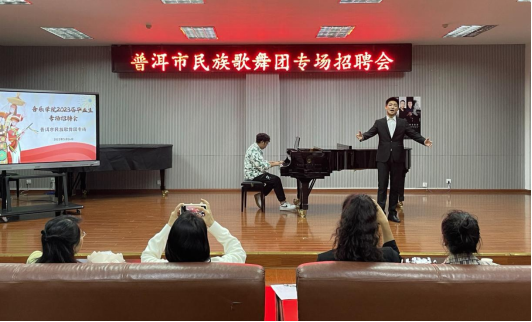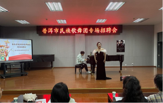 接着,民族声乐班的毕业生参加了普洱市民族歌舞团的专场招聘会,面试内容包括自我介绍、自选曲目演唱、现场视唱考核、才艺展示四个环节。面试结束后,普洱市民族歌舞团的老师和意向录用的毕业生进行深度交流。