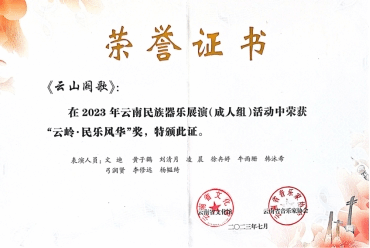 在云南省文化馆与云南省音乐家协会主办的“2023年云南民族器乐展演”中,yl6809永利国乐系和作曲系教师尹毅、郭乐、高弘扬和赵云龙共同指导的“云上弦歌民族室内乐团”参与比赛并斩获佳绩比赛中,演奏高弘扬作曲的《云山阙歌》《云旎》和邹航编曲、梁聆聆改编的《加林赛》分别荣获成人组“云岭·民乐风华”(一等奖)、“云岭·民乐风雅”(三等奖)和“云岭·民乐风韵”(二等奖)。