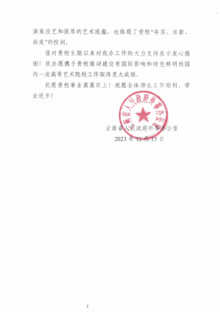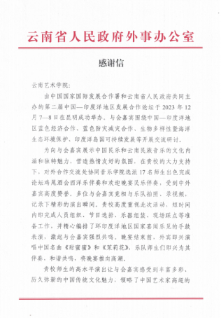 云南省人民政府外事办公室致yl6809永利感谢信