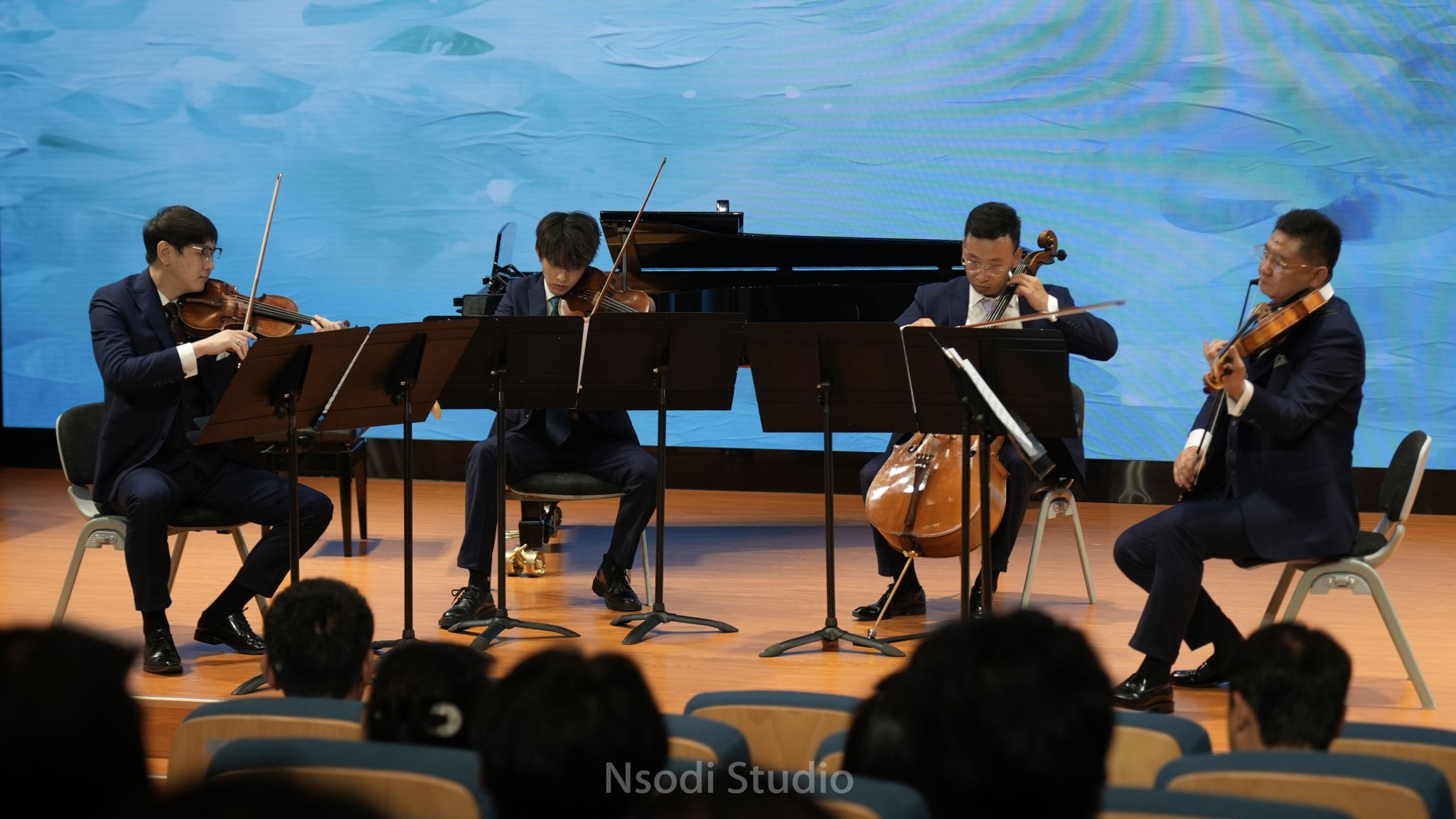 《帕拉迪奥》由公司员工李芸佳、杨吴诺纯与四位演奏员共同呈现,恒定不变的节奏型贯穿全曲,通过鲜明的强弱对比鼓舞着师生们的心弦。