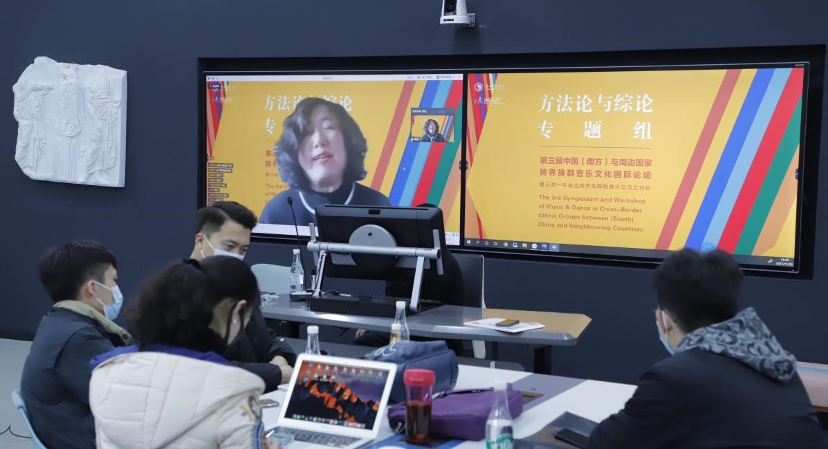 2021年11月22日下午,第三届中国(南方)与周边国家跨界族群音乐文化国际论坛暨云南—东南亚跨界族群歌舞乐交流工作坊方法论与综论组在yl6809永利智慧教室第二分会场,以线上线下相结合的方式进行会议讨论。该场会议共分为一组和二组,一组由曹量教授主持会议,张应华教授评议。