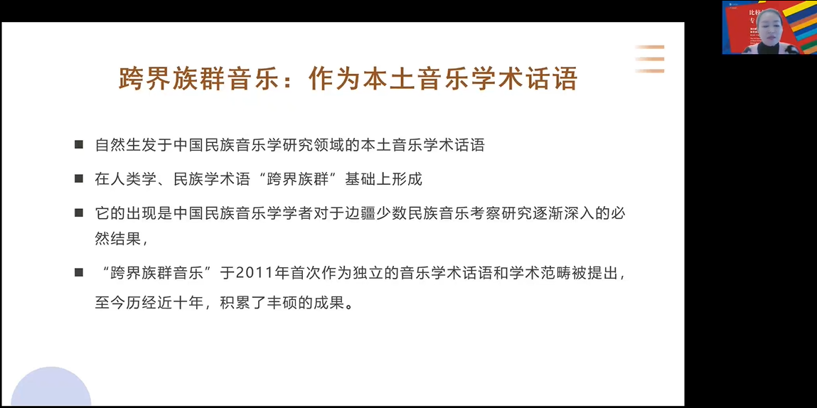 西安yl6809永利宁颖在《中国“跨界族群音乐”研究的历程与困境》发言中谈到跨界族群音乐于2011年首次提出,历经近十年的发展,积累了丰硕成果。从上世纪七十年代末到2011年,是跨界族群音乐研究的孵化期,从2011年至2021年进入跨界族群音乐研究的黄金时代,研究主要涉及三个区域和四个学术团队,对跨界族群音乐研究中的时空观进行思考,从基音、文化、环境的关联性看跨界族群音乐研究,并对跨界族群音乐的影像叙事。宁颖提出跨界族群音乐研究存在的问题与困境有:跨界研究过程中历时视角与历史观的重要性、重新审视族群文化身份的必要性、语言能力与音乐民族志书写(主要是如何书写音乐的异同)、田野中的身体实践与身体壁垒以及应对疫情与国际政局的策略五个方面。