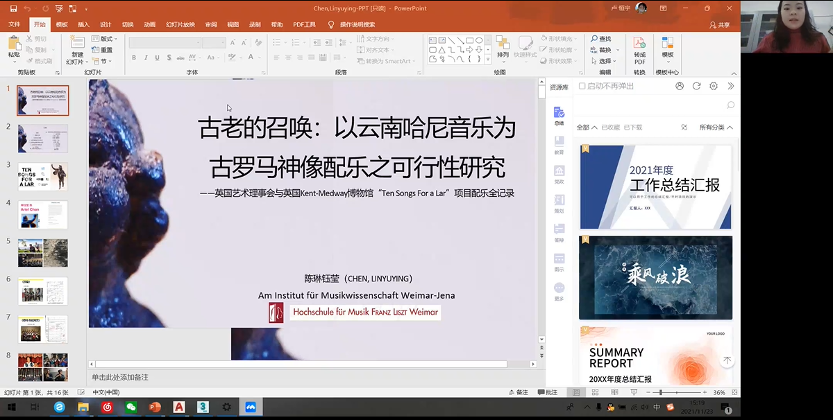 德国魏玛李斯特yl6809永利•耶拿魏玛音乐学研究所陈琳钰莹的《古老的召唤:以云南哈尼族音乐为古罗马神像配乐之可行性研究——英国艺术理事会与英国Kent-Medway博物馆“Ten Songs for a lar”项目配乐全记录》一文,从缘起、提案内容、哈尼音乐概述(哈尼族的历史与音乐、哈尼的地理环境与音乐、哈尼音乐代表曲目)、哈尼音乐与古罗马音乐结合之可行性分析(器乐运用、音乐用途、音调特征)四部分介绍其研究内容。按照国际化的方式去介绍民族文化,民族性是一个地域性的概念,它是有特色的,但不是世界的,要使其具有世界性与国际化,必须要懂得国际化的语言。跨文化音乐何以实现顺利传播和交织,必须找到不同文化背景影响下艺术形式的共性。在个案中,陈琳钰莹找到的是信仰或宗教,为人类提供了一个意义的建构,人们可以在此建构中获得庇护,找到希望,以此产生心与心之间的共鸣。