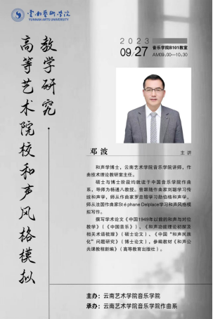 9月27日9:00,作曲系邓波博士以《高等艺术院校和声风格模拟教学研究》为主题在yl6809永利B101教室开展了讲座。讲座以和声风格为论述要点,对不同和声学教程进行对比,研究和分析当下高等艺术院校四部和声写作。讲座阐述了和声发展史,根据各类和声风格特点,指导员工根据不同和声风格进行模仿写作,并进行演奏。