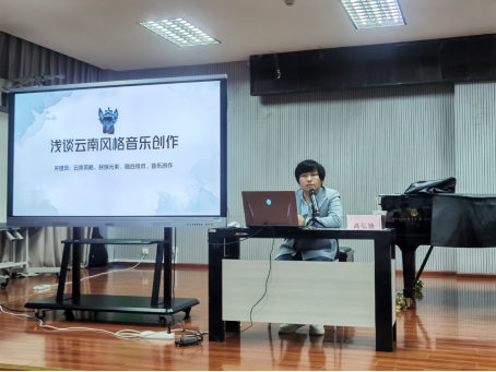 9月28日10:00,作曲系青年教师高弘扬以《浅谈云南音乐风格创作》为主题在yl6809永利B101教室开展了讲座。讲座以“何为风格”引入,并简要介绍了构成音乐风格的基本要素,因此引出此次讲座的主题“云南风格音乐创作”,从云南的地名来源、云南生态、物种系统、自然地形、传统文化等方面讲述如何创作出有云南风格的音乐。