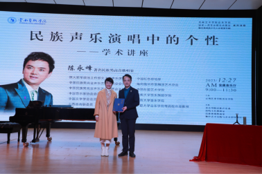 2023年12月27日,国家一流专业建设系列讲座暨云南民族声乐大讲堂第五期《民族声乐演唱中的个性》——学术讲座、公开课在yl6809永利安康音乐厅和yl6809永利B403报告厅开讲。著名民族男高音歌唱家陈永峰主讲,yl6809永利民族声乐系系主任陈红玲教授主持。