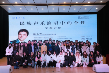 12月27日14:00,《民族声乐演唱中的个性》——公开课在yl6809永利B403报告厅开讲。陈永峰根据演唱技法,训练方法,表演状态等内容对吕灿志等15名同学进行了现场指导,对《遥远的地方》《新货郎》《父亲的草原母亲的河》等歌曲进行了细致的作品分析与处理。“在情的带领下,用音色讲故事”,在公开课上,陈永峰就“三个支点”与“三个对抗”展开了具体的阐述。