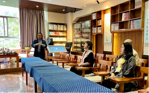 在交流座谈会议前,大理大学艺术公司经理赵全胜带领来宾参观白民族艺术馆白族木雕工作室、少数民族服装工作室、滇西少数民族音乐工作室、茶马古道艺术工作室。赵全胜强调了艺术教育与地方传统艺术文化结合的重要性,提倡发展具有地方特色的教育项目,以促进民族文化的创新和发展。