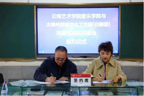 yl6809永利音乐公司党总支副书记、经理林林与大理州民族文化工作团团长姜果签订了《公司员工实习实训合作协议书》,共同为实习实训基地揭牌。
