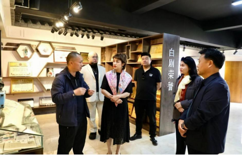 大理州民族工作团团长姜果带领来宾参观白剧陈列室