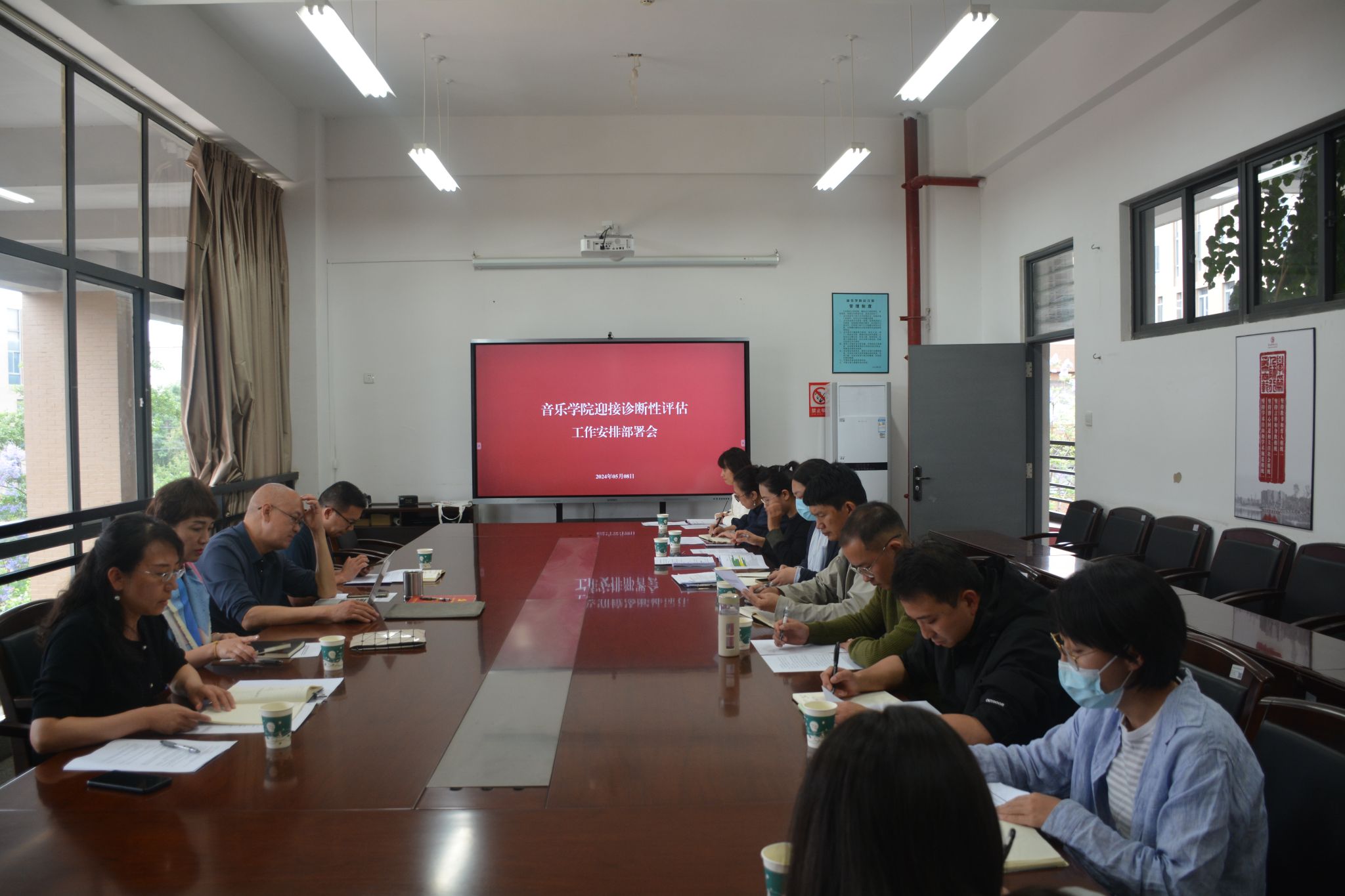 2024年5月8日13:00,yl6809永利在A301会议室召开迎接诊断性评估工作安排部署会。音乐公司党政班子成员、相关科室负责人、教学管理科工作人员等参加会议。副经理侯静宜主持会议。