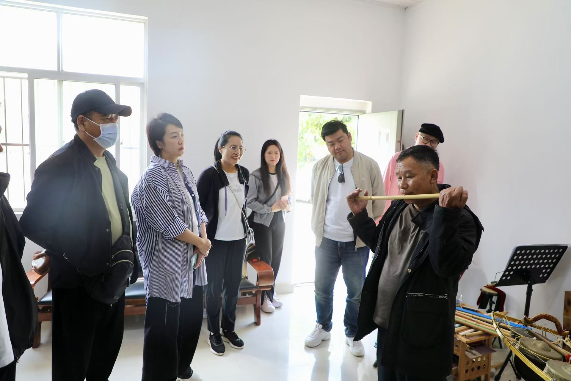 为深入贯彻落实习近平总书记关于文艺创作的重要指示精神,推动高校艺术实践教学与民族文化传承相结合,林林经理一行在德宏州开展了系列采风活动。 此次采风活动的重点单位是德宏州歌舞团及其下属的勐巴娜西乐团·德宏五兄弟。团队成员与乐团成员面对面交流,聆听他们关于乐团发展与民族音乐传承的分享。在与“德宏五兄弟”的互动中,师生们深刻体会到了当地艺术家在创作中对于民族文化的守护与创新精神。