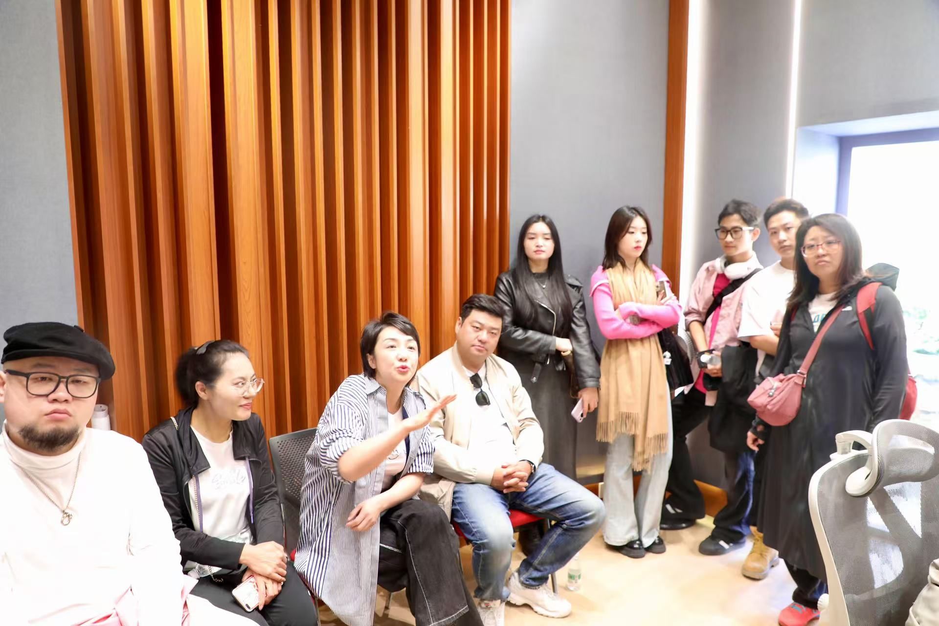 随后,团队来到德宏州歌舞团勐巴娜西乐团录音工作室,与乐团成员共同探讨民族音乐在现代音乐创作中的融合与应用。通过在录音室的互动学习,师生们了解了音乐作品的录制流程,特别是民族音乐与流行音乐方面的结合与处理方法。