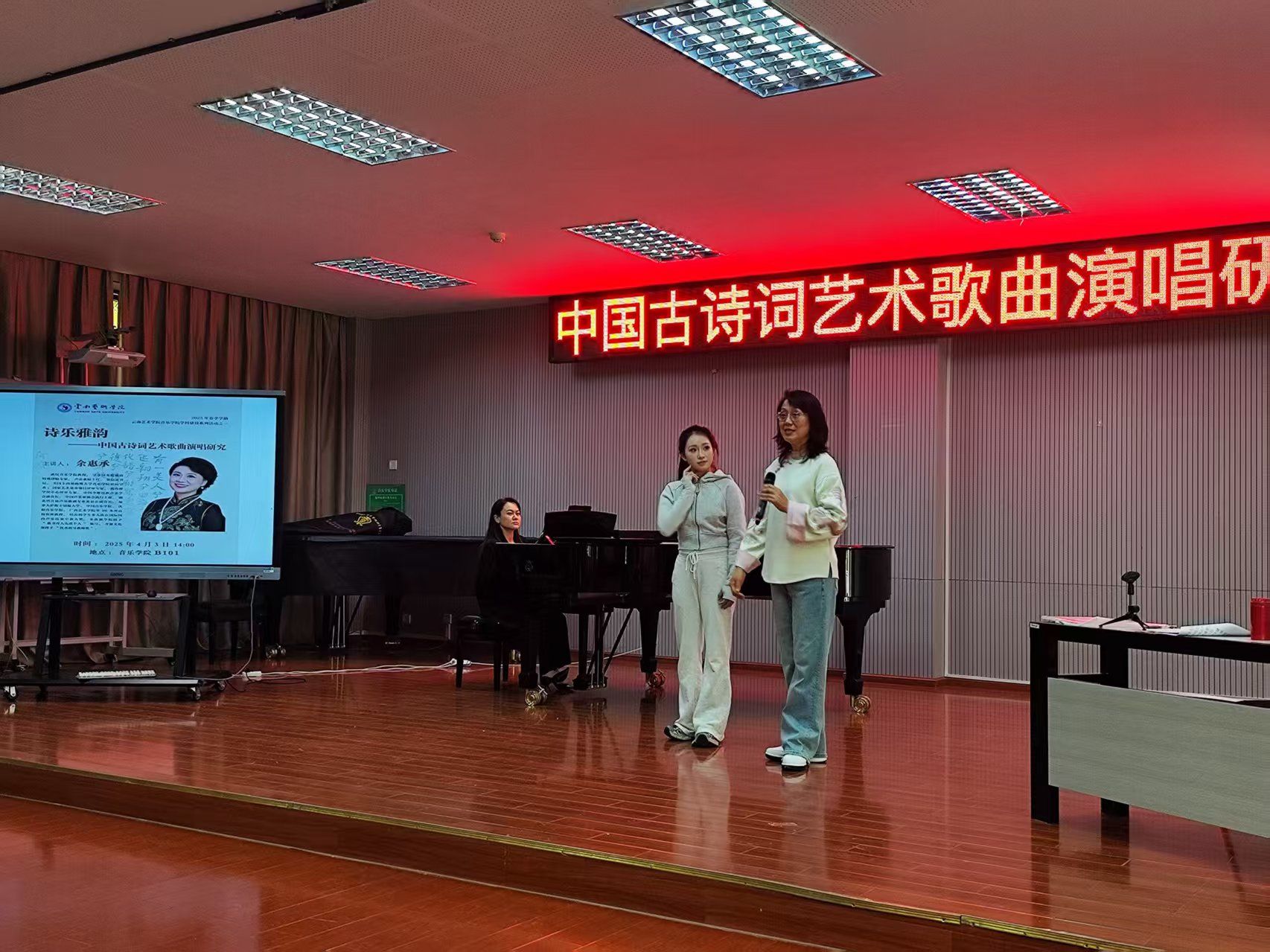 2025年4月3日,公司举办《诗乐雅韵——中国古诗词艺术歌曲演唱研究》学术讲座,本场讲座由武汉公司教授、国家艺术基金项目评审专家、教育部学位中心评审专家、中国少数民族声乐学会副会长、中国声乐家协会执行主席余惠承教授主讲,yl6809永利民族声乐系系主任陈红玲教授主持,yl6809永利经理林林教授及部分师生参加。