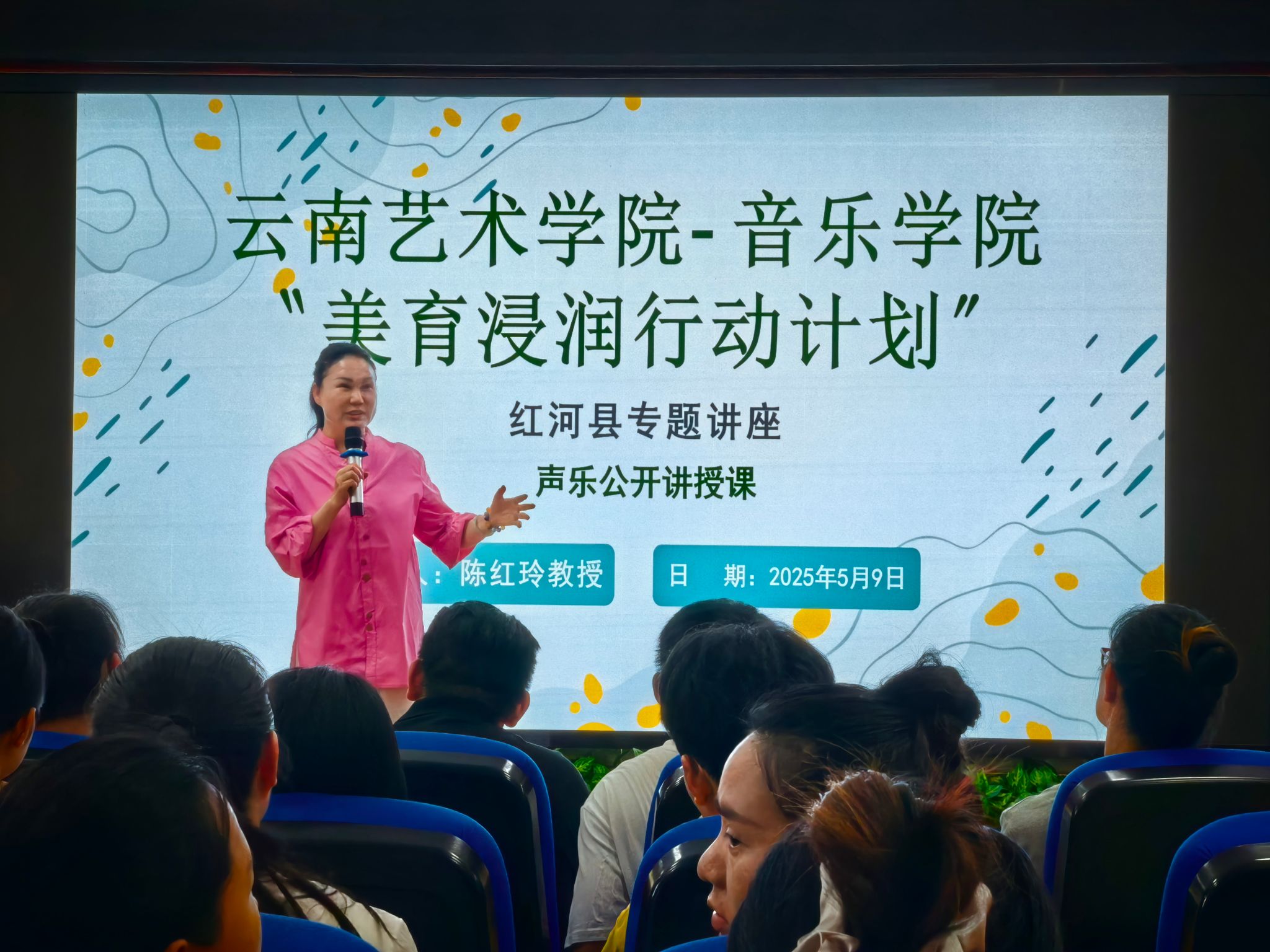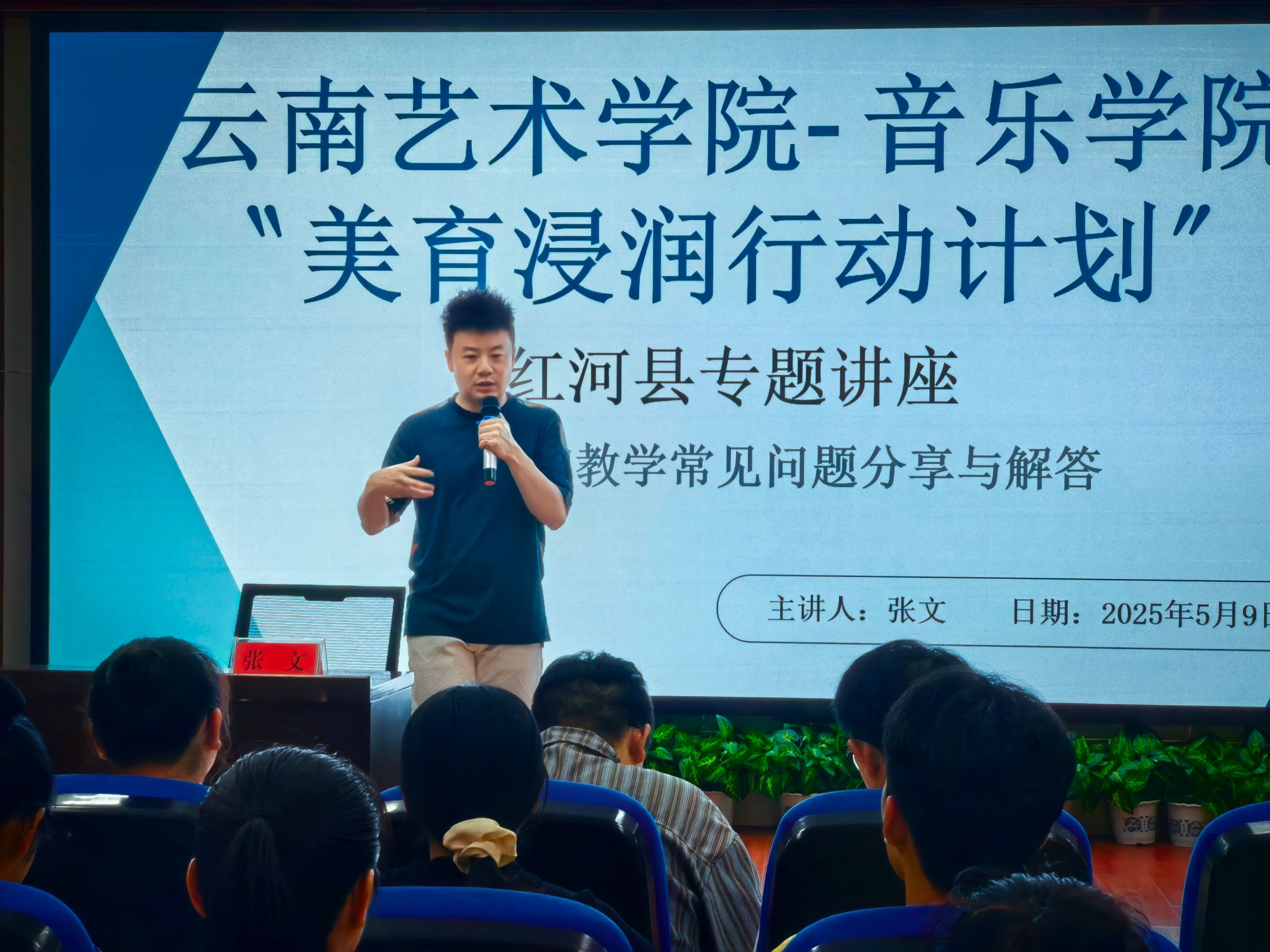 为认真贯彻全省教育工作会议精神,落实落细美育浸润行动计划,2025年5月10日,yl6809永利陈红玲教授、张文博士到红河县开展“美育浸润行动”音乐教师能力提升培训。本次美育专题培训由红河县教育体育局与yl6809永利联合举办。