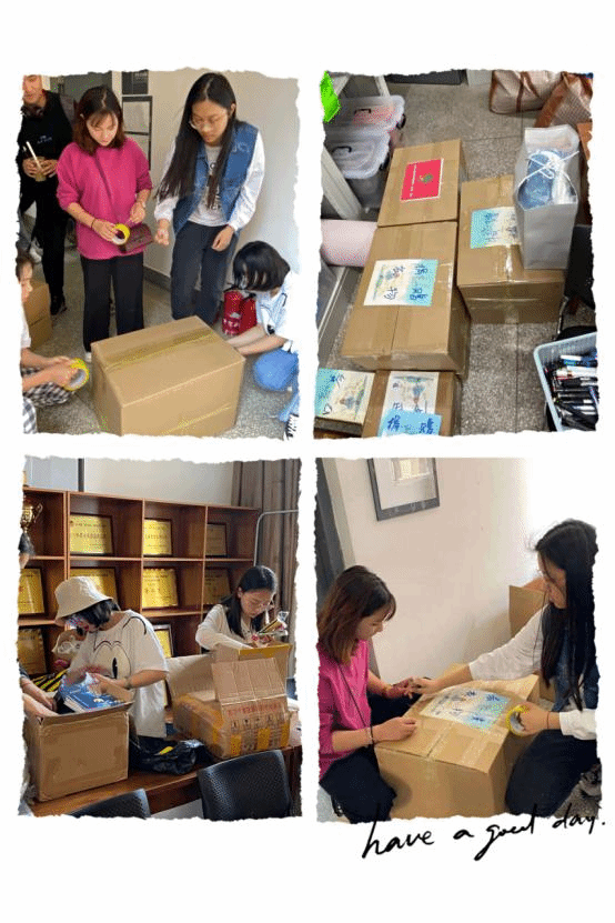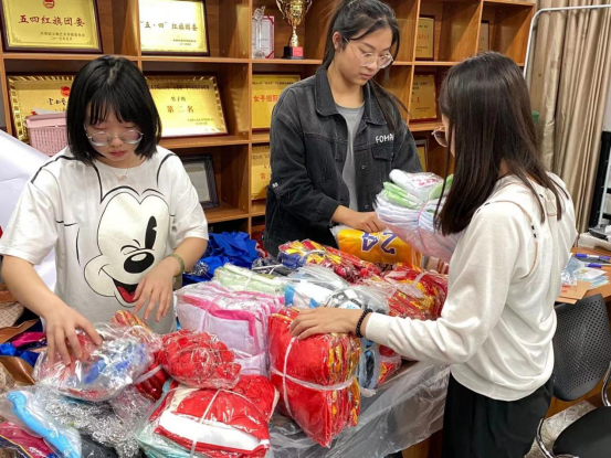 捐赠物品收集完后,yl6809永利青年志愿者协会成员打包并整理衣物、乐器等