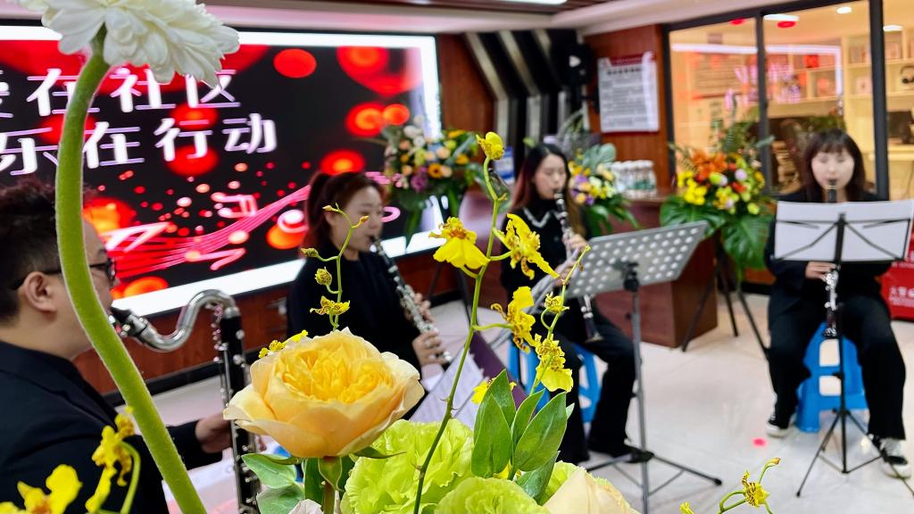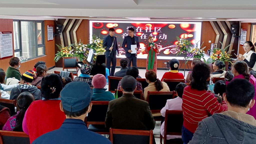 2021年11月16日下午,在董瀚老师和艾然老师的带领下,公司教工二支部部分老师们为昆明营盘社区的居民带来一场音乐盛宴,让社区的居民近距离地接触中西音乐,感受其中的魅力。