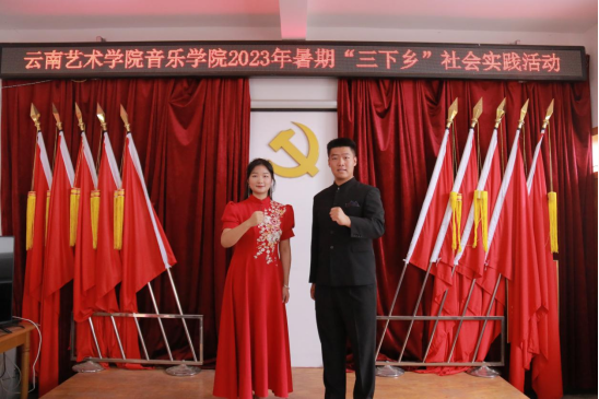 随后实践团开展了有内涵、有理想的宣传教育活动,组织“宣讲团”面对当地干部群众开展了党的政策理论宣讲。通过宣讲,传播下艺术与希望的种子,向当地群众展现了老员工志愿者良好的精神风貌,也宣示着云艺音乐青年不忘初心、笃志前行的铿锵誓言。