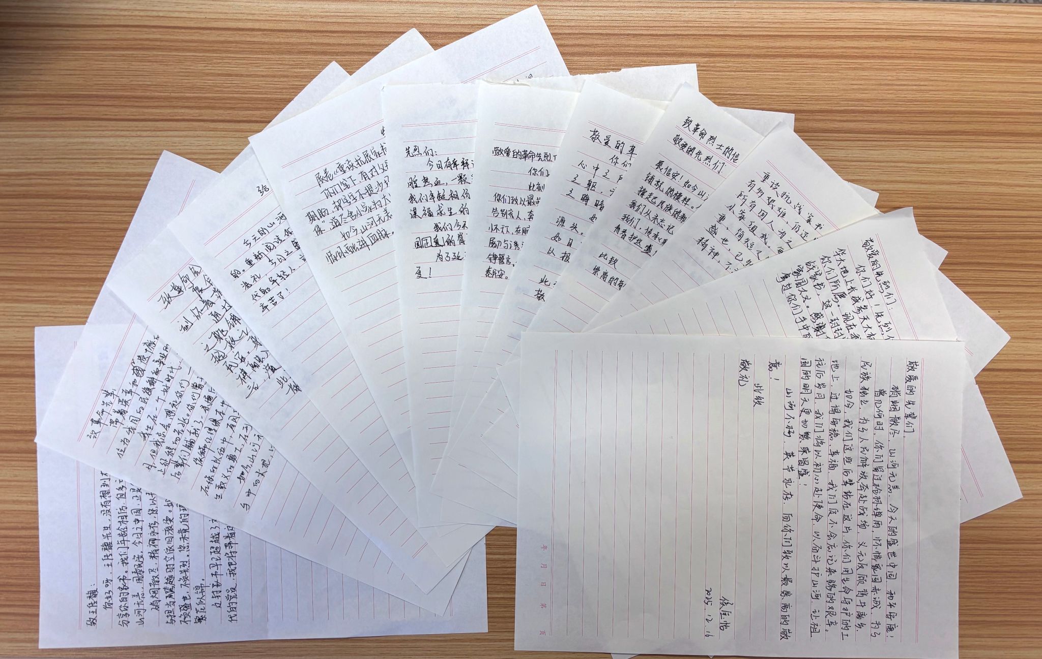 在“跨时空对话”环节,全体同学现场提笔,撰写并分享“给革命先烈的一封信”。笔墨之间,既有对先烈的深切告慰,也有“强国有我”的青春誓言:
