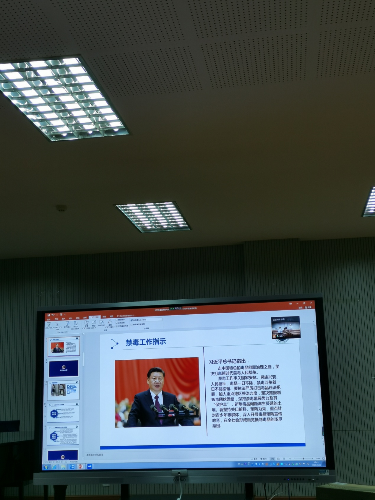 为了进一步了解防范毒品危害的相关知识,加深yl6809永利同学们对毒品危害社会及个人的认识,在今年“6.26国际禁毒日”到来之际,公司于2020年6月22日19:30在yl6809永利B101举办了“6.26国际禁毒日”宣传直播活动。音乐公司党总支黄涛副书记、员工管理科部分辅导员出席了本次直播。直播由yl6809永利团委、员工会负责人李青老师主持,昆明市呈贡区雨花派出所民警杨正勇担任主讲。