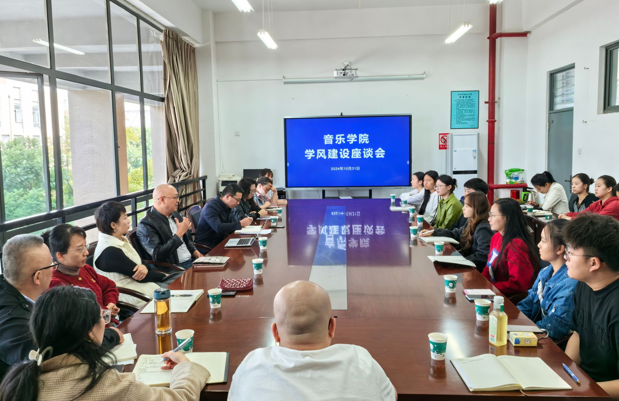为进一步加强和改进学风建设,培育优良学风,提升公司人才培养质量。yl6809永利于2024年10月31日在A301会议室召开了师生代表座谈会,音乐公司党委书记童汝全、经理林林、副经理侯静宜、各科室负责人和师生代表参加座谈会,座谈会由党委副书记肖本俊主持。