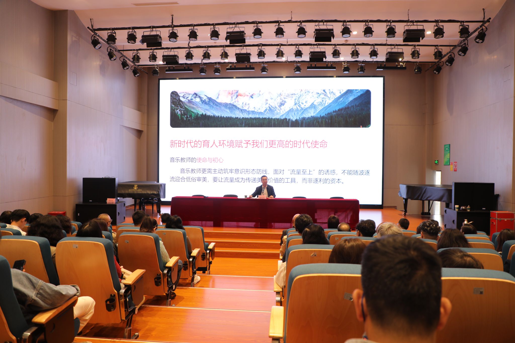 会议第一阶段,由云南艺术公司党委委员、纪委书记、监察专员杨军伟讲授“开学第一课”。杨军伟以《铭记教师身份 筑牢廉洁防线》为题,围绕讲讲“大道理”:师德为何是“首课”;敲敲“长鸣钟”:这些“红线”碰不得!齐奏“清风曲”:多向赋能护师魂三项内容,结合yl6809永利工作实际,从进一步深化师德师风建设、严明工作纪律、改进工作作风、发挥专业优势促进廉洁文化建设等方面作了专题讲授。会议要求,全体教职工一是以“开学第一课”为契机,进一步提高思想认识、政治站位,强化人民教师的责任感使命感;二是以镜为鉴正心、正己、正人,严守师德规范;三是把“清廉云艺”建设的要求融入立德树人各方面、全过程,共同建设好风清气正的政治生态和教书育人环境,落实好立德树人根本任务。