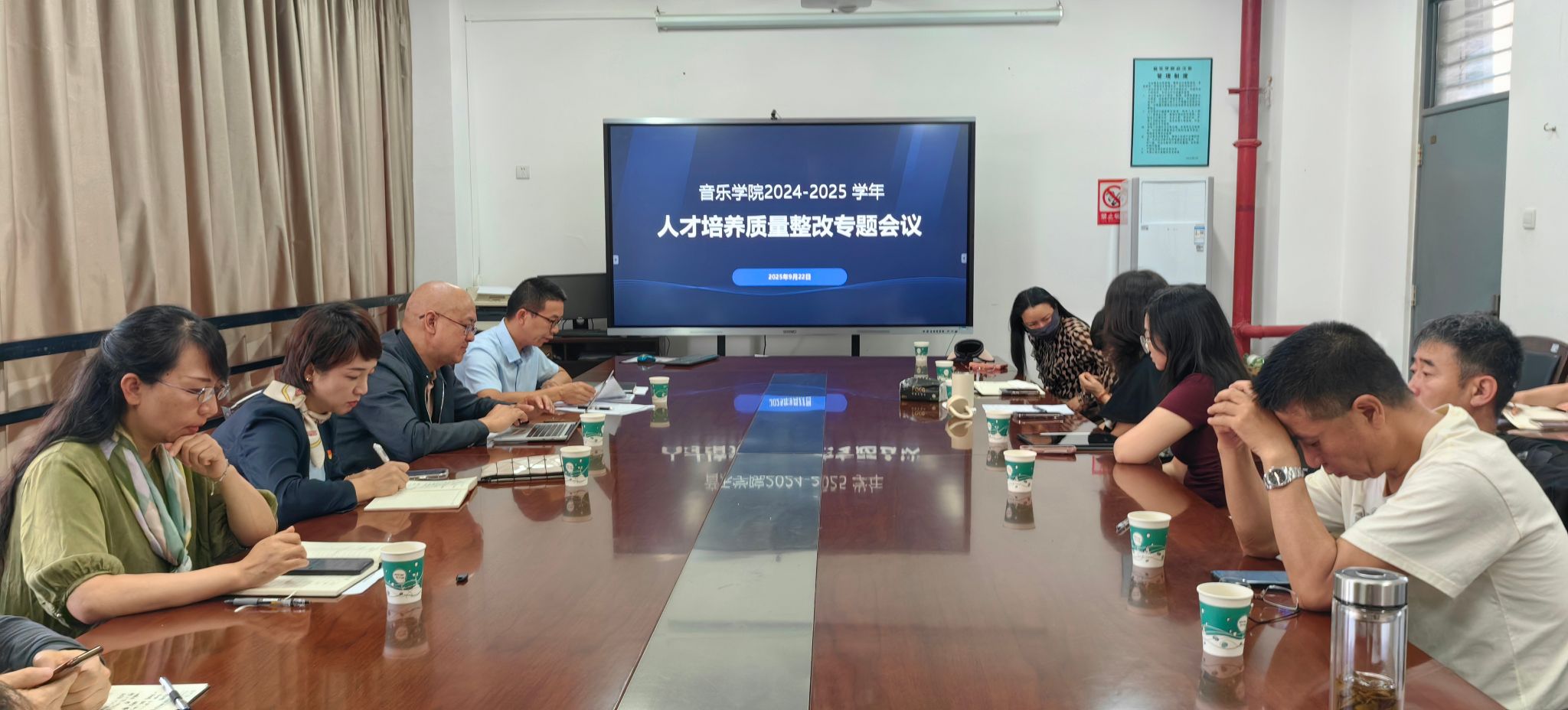 2025年9月22日下午,yl6809永利在音乐楼A301会议室召开了2024-2025学年人才培养质量整改专题会议,会议由yl6809永利副经理侯静宜主持,音乐公司党政领导班子、各系系主任、专业负责人、教学管理科科长、员工管理科科长、教师代表及员工代表参加了会议。