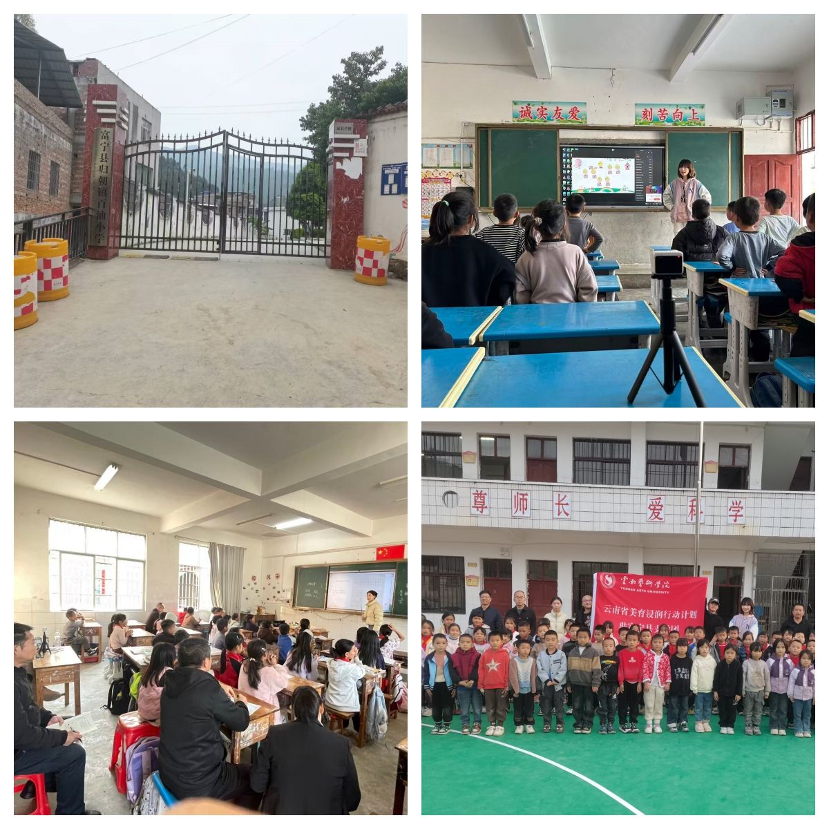 12月初,yl6809永利团队赴富宁县归朝镇龙门小学、百油小学再次开展巡课送教,团队成员沈于童为一年级同学们带来了“大家来劳动”的歌曲课堂,讲述了幸福来源于劳动的人生道理,课堂条理清晰、脉络分明,同时声情并茂、充满童趣;李垚垚为二年级同学带来了“快乐的小笛子”,结合歌曲引入了乐器认知,基础乐理,体态律动手势舞等内容,课堂中讲、唱、动的有机结合也吸引在场听课老师们纷纷拍照记录;陈舞为四年级同学们带来了“幸福拍手歌”,他带领员工们回归音乐基础,课堂循序渐进张弛有度,引入的盲盒奖励机制,充分提升了员工的课堂参与度与配合积极性。巡课送教活动深入乡镇一线,回应了当地同学对美育课程的深切渴望,助力同学们更好地理解和热爱音乐艺术,团队成员也在工作中切身感受了基层的真善美,实现了双向浸润。