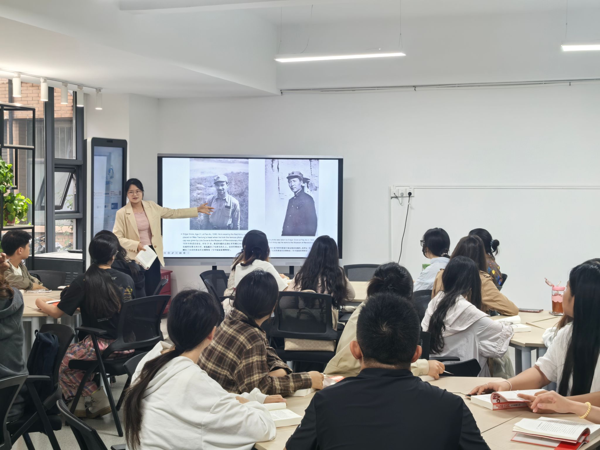 本次引路领读由电影电视公司辅导员李莞老师领读埃德加·斯诺(美)的著作《红星照耀中国》,书中描述了埃德加·斯诺1936年6月至1936年10月对中国西北革命根据地进行实地采访的所见所闻,多维度展现了中国共产党为民族解放事业所展现的坚定信念、艰苦奋斗和无私奉献精神,有力打破了西方媒体对中国不实的报道和国民党对陕甘宁边区的新闻封锁,瓦解了种种歪曲、丑化中国共产党的谣言。